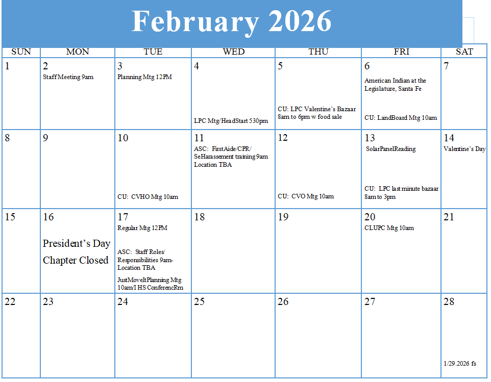 2026 CHAPTER PLANNING & regular CHAPTER MEETINGS